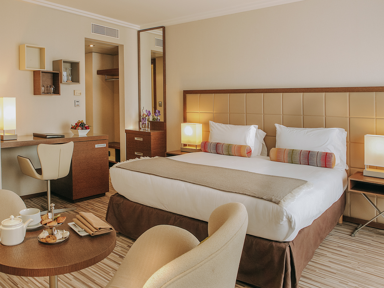 The AC Hotel Ambassadeur Antibes Juan les Pins has a history of beauty and taste in the heart of the French Riviera. It offers versatile spaces, an atrium full of natural light and an optimal location for exploring the beautiful and worldly Côte d'Azur. Ideal for a refreshing dip in the lagoon-style pool during summer or year-round swimming in the indoor pool, or for a fitness session in the 24-hour gym. It has a delightful breakfast room, the ACoustic Room, and a restaurant where you can enjoy international dishes, the Au Comptoir des Sable. The rooms and suites, among the finest hotels Juan les Pins has to offer, feature classic modern European design and the comforts of home, each with a balcony overlooking the pool, the sparkling sea or the lively Juan les Pins cityscape. They offer guests direct dial telephone, mini bar, satellite TV, safe, hairdryer, air conditioning, wi.fi, tea and coffee maker.