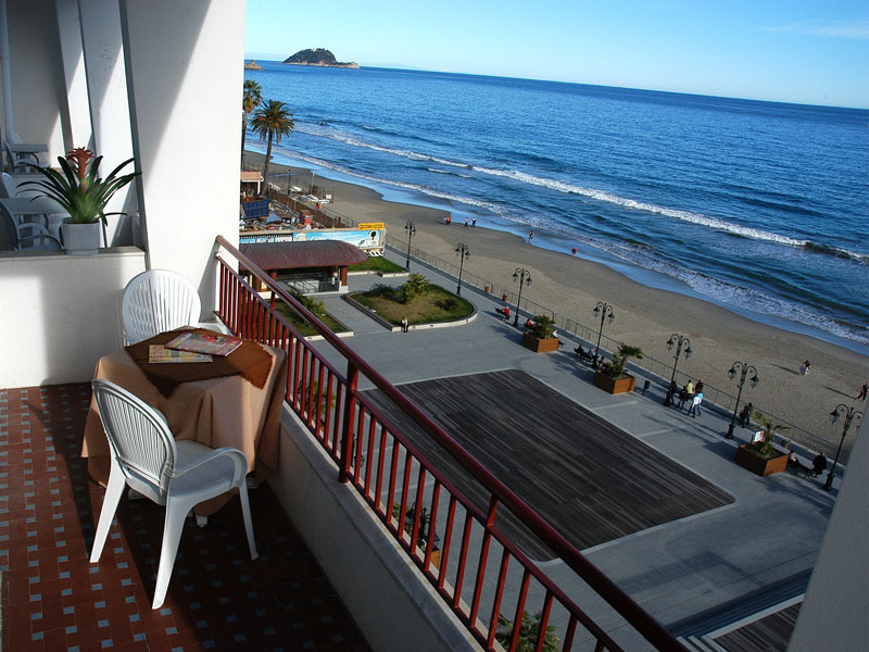 Very central, overlooking the main square of Alassio, a stone's throw from the beach and the sea.