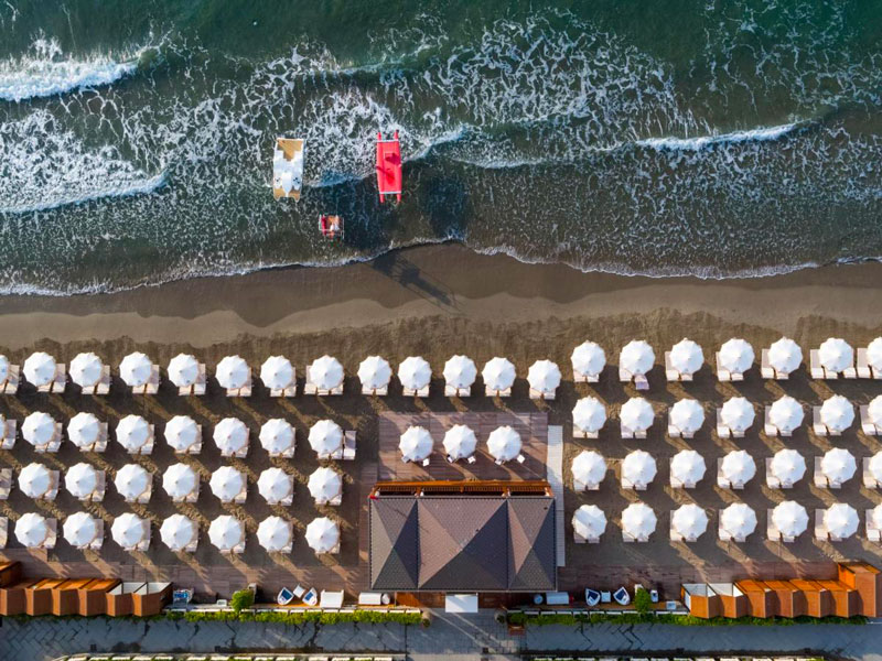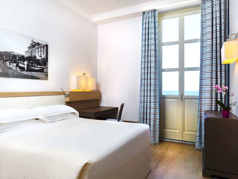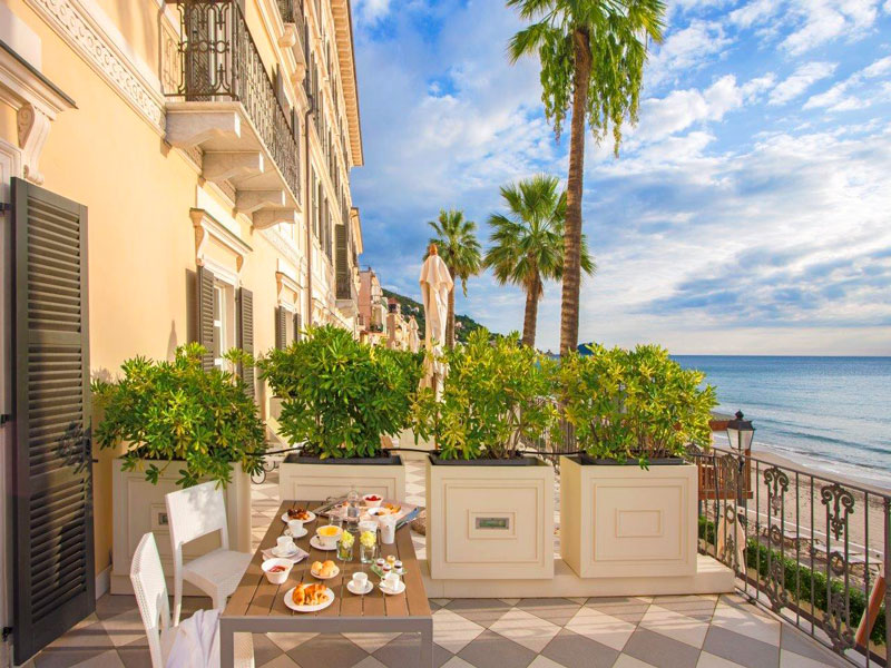 An icon of luxury, the hotel has historically attracted a refined clientele, primarily English. Guests, drawn by the year-round mild climate, would stay in Alassio for extended periods. The enchanting location, directly on Alassio's renowned beach (included in the price), in the heart of the historic center, close to shops and traditional eateries, the well-equipped spa, and the hotel's exclusive features will make your holiday relaxing and unforgettable. This iconic 5-star hotel, nestled among the beauty of the Ligurian coast, combines the timeless atmosphere of a historic residence with top-notch services, perfect for a romantic getaway, a family vacation, or a rejuvenating stay. The Grand Hotel Alassio is a place where every detail is designed to pamper its guests, offering panoramic views of the beautiful Ligurian Sea and elegant rooms with modern and refined furnishings, air conditioning, free Wi-Fi, satellite TV, a minibar, and room service. A wellness center with beauty and therapeutic treatments, an indoor heated seawater pool, a sauna, a Turkish bath, sensory showers, and a relaxation area. A Ligurian Gourmet restaurant serving contemporary dishes and local products, and meeting rooms equipped for corporate or private events. The facility is accessible to people with disabilities, but not on the beach.