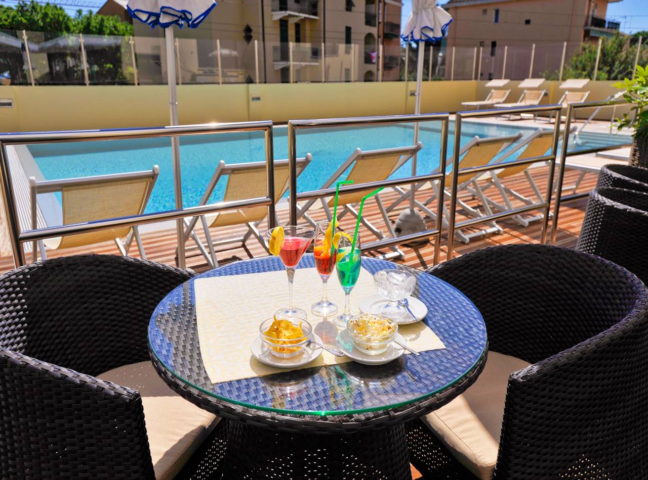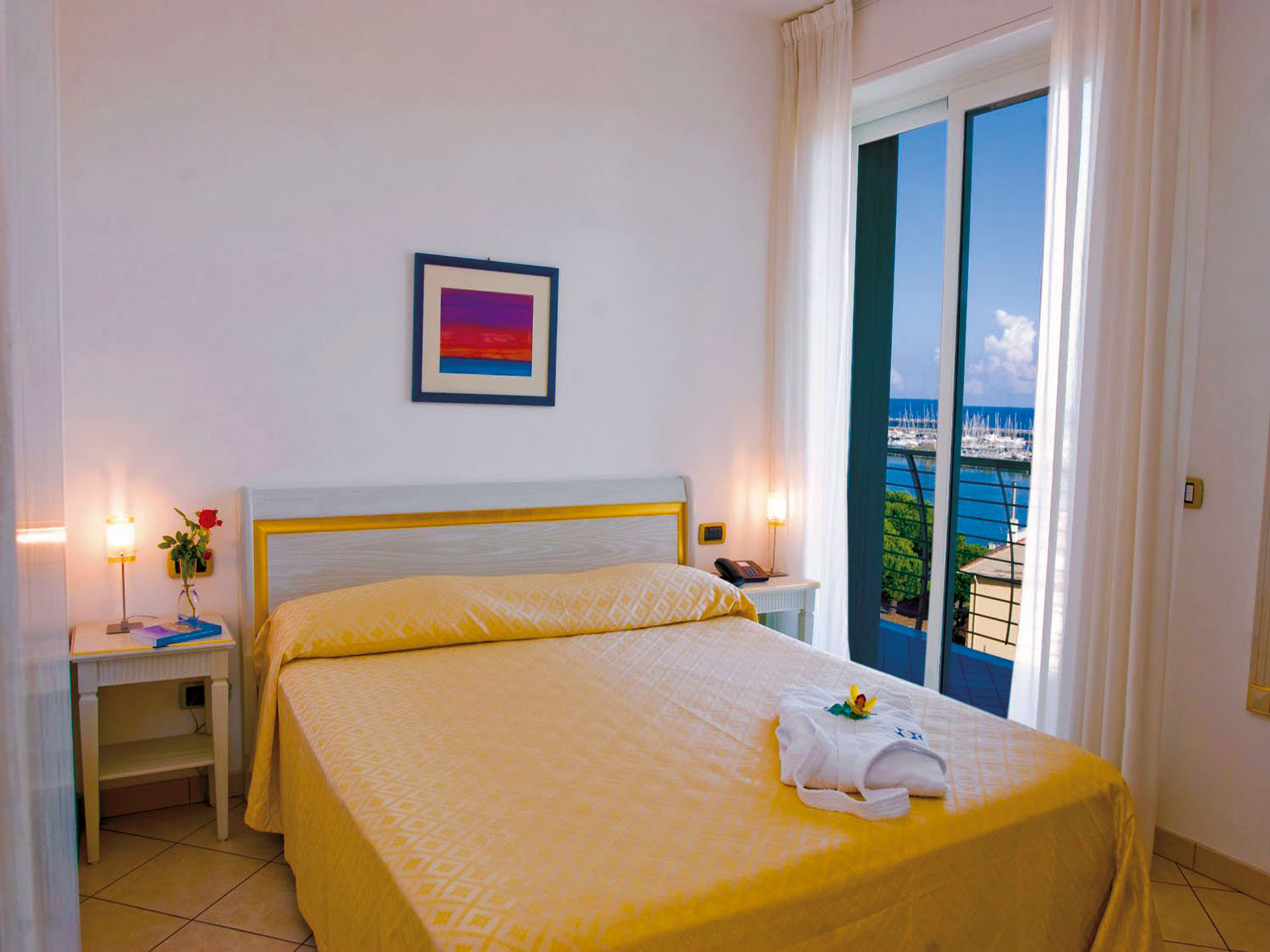 The Excelsior hotel is located a few metres from the sea and enjoys an enchanting panoramic view of the harbour. The completely renovated environment favours a pleasant stay for both relaxation and sport, in fact the hotel is close to Loano's Palasport and tennis courts. It has 52 rooms of different types, all soundproofed, with balcony or terrace, all with private bathroom, hairdryer, telephone, satellite TV, safe and adjustable air conditioning. The classic ones on the first floor on a large terrace-solarium for shared use or on the 2nd floor with balcony. The Vista on the 3rd floor with a view of the sea and marina. Le Marina on the 5th floor, with fridge. Cable internet connection. Sea view on request with surcharge. Rates on request for the Panoramiche on the 4th floor with air conditioning, laptop safe, fridge, panoramic view of the hill or harbour. The hotel was recently renovated with the addition of 2 floors to the building, and the swimming pool with jacuzzi, unheated, for the summer, can be reached directly from the rooms by a dedicated lift.