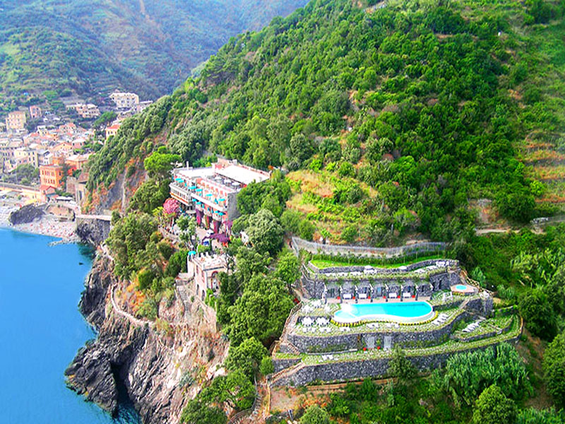 Surrounded by typical Mediterranean vegetation, it is ideal for any type of holiday and the starting point for discovering the beauty of the Cinque Terre. Consisting of 43 rooms on 3 floors, it is one of the best structures in the Cinque Terre area thanks to its enchanting position with a breathtaking sea view. It is equipped with every comfort in an authentic and refined ambience. Its restaurant with panoramic terrace is renowned for the excellent quality of its cuisine, with attention to every detail. It has an air-conditioned reception, internet point and free wi-fi, lift, bar with lounge, TV room, restaurant and swimming pool.