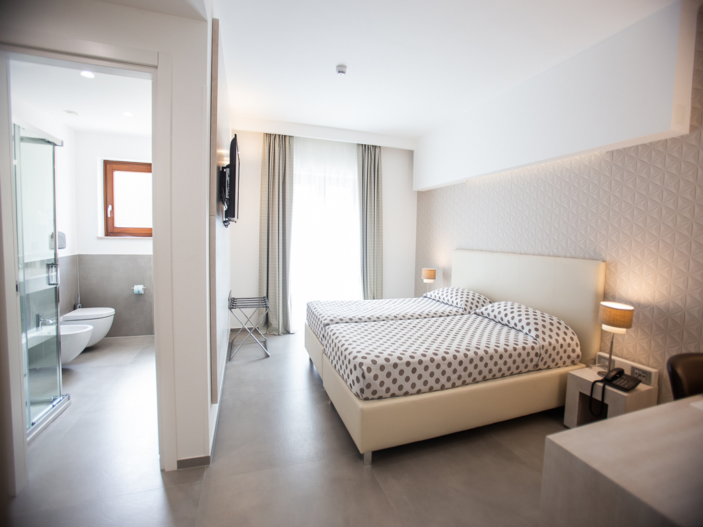 The four-star Hotel Monte Sarago, opened in June 2010, offers a picturesque view that embraces the white of the old town, the blue of the sea, and the green of the olive groves. Its characteristic location makes the hotel ideal for business travellers as well as for those who want to spend a holiday and relax. It has 67 rooms spread over 6 floors, and a spacious and comfortable restaurant "Attico Rooftop 225", where Mediterranean-style cuisine is served that often blends with hints of modernity. You can savour the aromas of the kitchen garden and the flavours of the sea and land, while tasting excellent Italian wines and widely known and praised Pugliese reds. A moodern Spa with tailor-made programmes for the most demanding guests can be booked on site. It also has a large meeting room, "Sala Mazzini", capable of accommodating up to 210 people comfortably seated, and two meeting rooms, "Saletta Galleria" and "Saletta Roccia", useful for business meetings of up to 40 people, all equipped with the most innovative audiovisual systems and high-tech equipment. The rooms, some equipped for the disabled, have showers, hairdryers, safes, air conditioning, minibars, telephones and colour satellite TV.