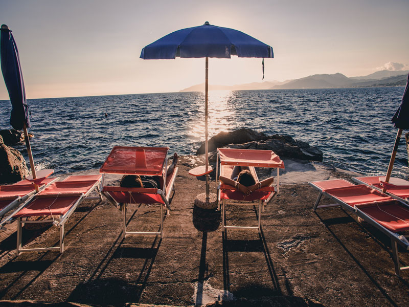 Sunbeds, deckchairs and sun umbrellas on the beach, obligatory, approximately € 20,00 per person per day € 20,00.