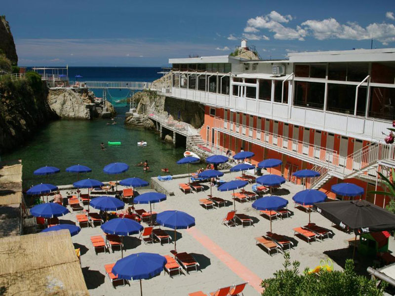 Entrance to the beach, connected to the hotel by a lift reserved for hotel guests, with a large cliff and equipped terraces overlooking the sea, with shared entrance and cabin included from 15/05 to 30/09.