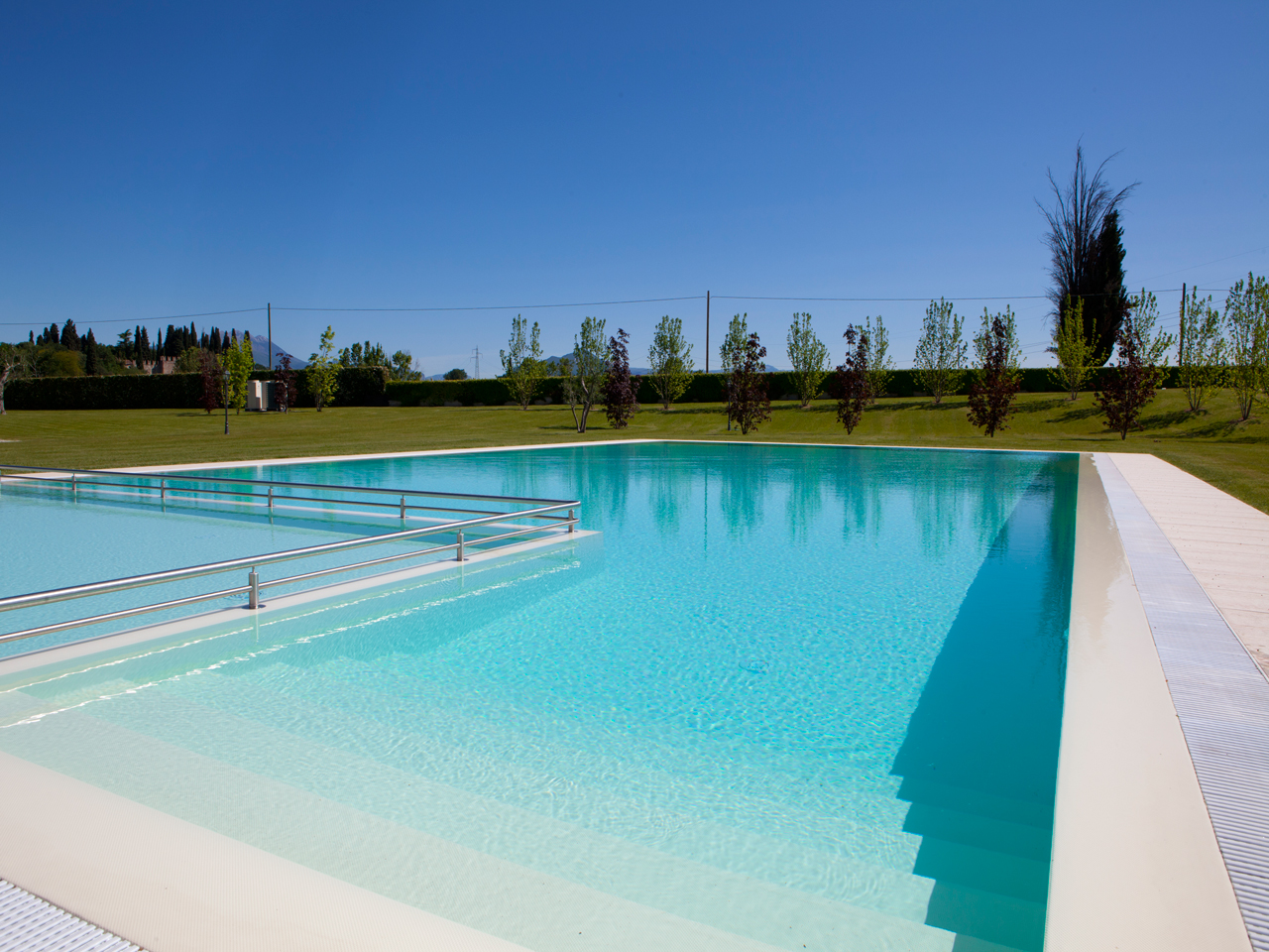 Lettinoe ombrellone in piscina.