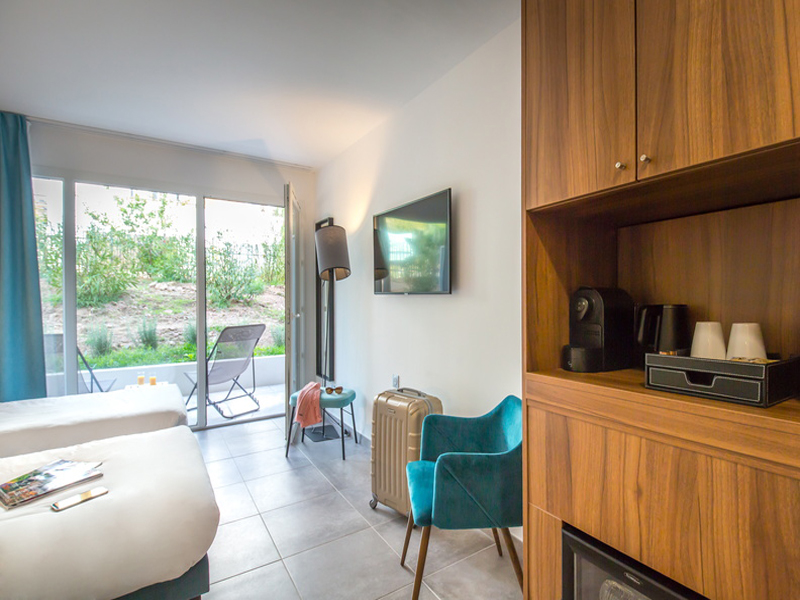 Saint-Raphaël è una città costiera situata sulla Costa Azzurra, nel sud-est della Francia, nel dipartimento del Var (Provenza-Alpi-Costa Azzurra). Molto apprezzata per il suo clima mediterraneo, offre belle le spiagge e paesaggi naturali ai piedi del Massiccio dell'Esterel. Ha un bel lungomare curato, il porticciolo turistico e un centro città vivace, e l'atmosfera è rilassata ed elegante, tipica delle località balneari della Costa Azzurra. Situato sul mare, l'Hotel La Plage si trova nel cuore di un'area privata di 3 ettari e propone le sue 85 camere climatizzate e numerosi servizi e strutture, tra cui la piscina riscaldata con vista sul Mar Mediterraneo, situata sul tetto, un campo da petanque e accesso diretto alla spiaggia di Bouloris tramite il sentiero pubblico. Le camere offrono Tv Sat, cassaforte, aria condizionata, wi-fi, set cortesia.
