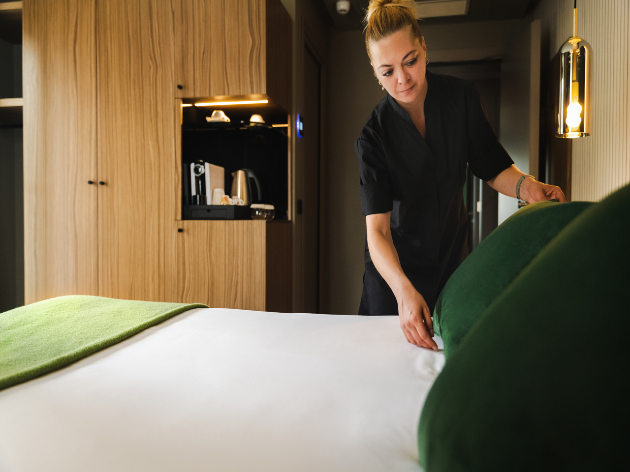 Tutte le stanze sono attrezzate con un sistema di insonorizzazione per un’impeccabile qualità del sonno e della privacy, con materassi ergonomici e leggerissime lenzuola in cotone rasato.