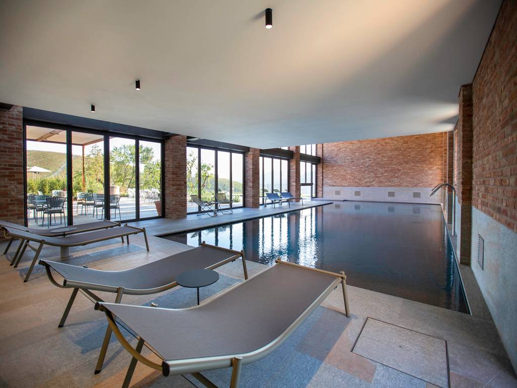 Area wellness con sezione whirlpool nella piscina, sauna finlandese, bagno turco, docce emozionali, gym.