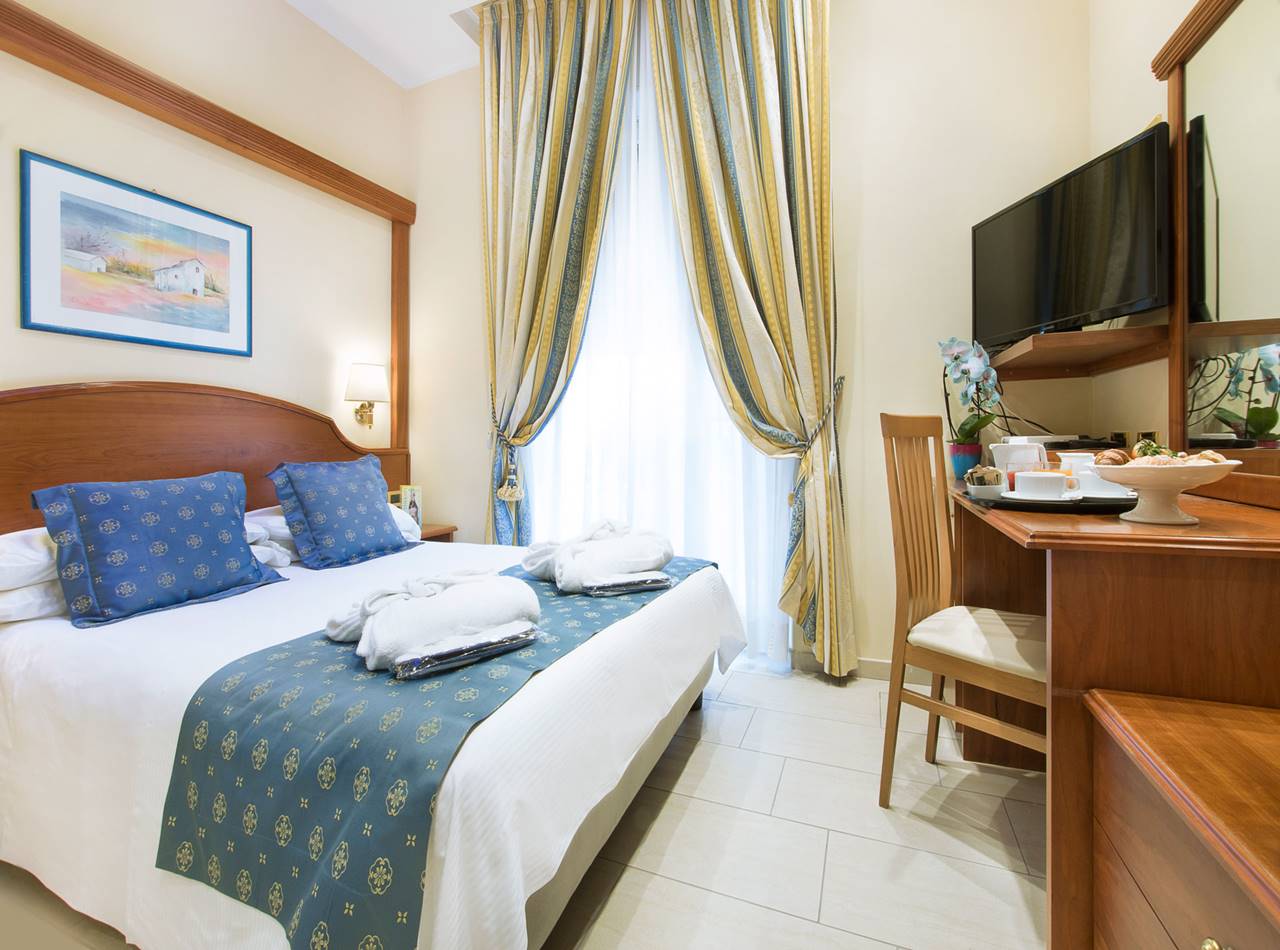 Le camere dispongono di telefono diretto, minifrigo con acqua minerale offerta all'arrivo, Tv Sat, cassaforte, asciugacapelli, aria condizionata e ventilatore, wi-fi, accappatoio e ciabattine, set cortesia, piccolo angolo soggiorno.