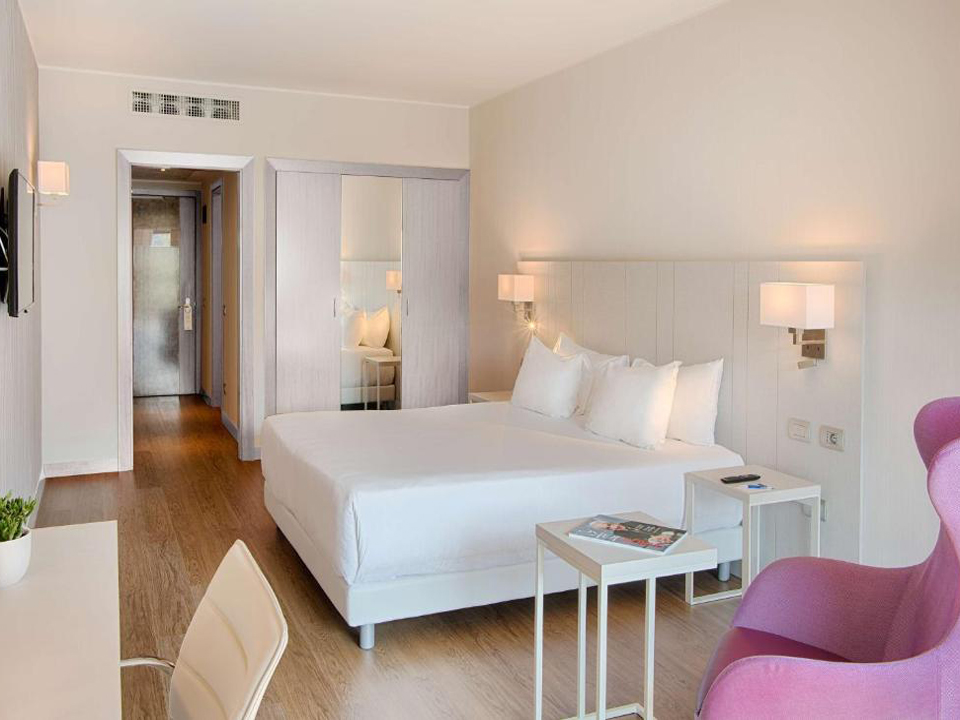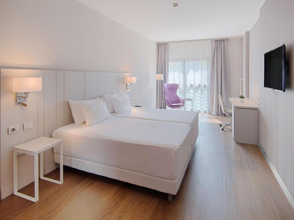 Le 111 camere, recentemente rinnovate, sono arredate in stile contemporaneo con pavimenti in parquet, dotate di telefono, minibar, Tv Sat, cassaforte, phon, aria condizionata, wi fi. Alcune sono comunicanti ed accessibili ai disabili.