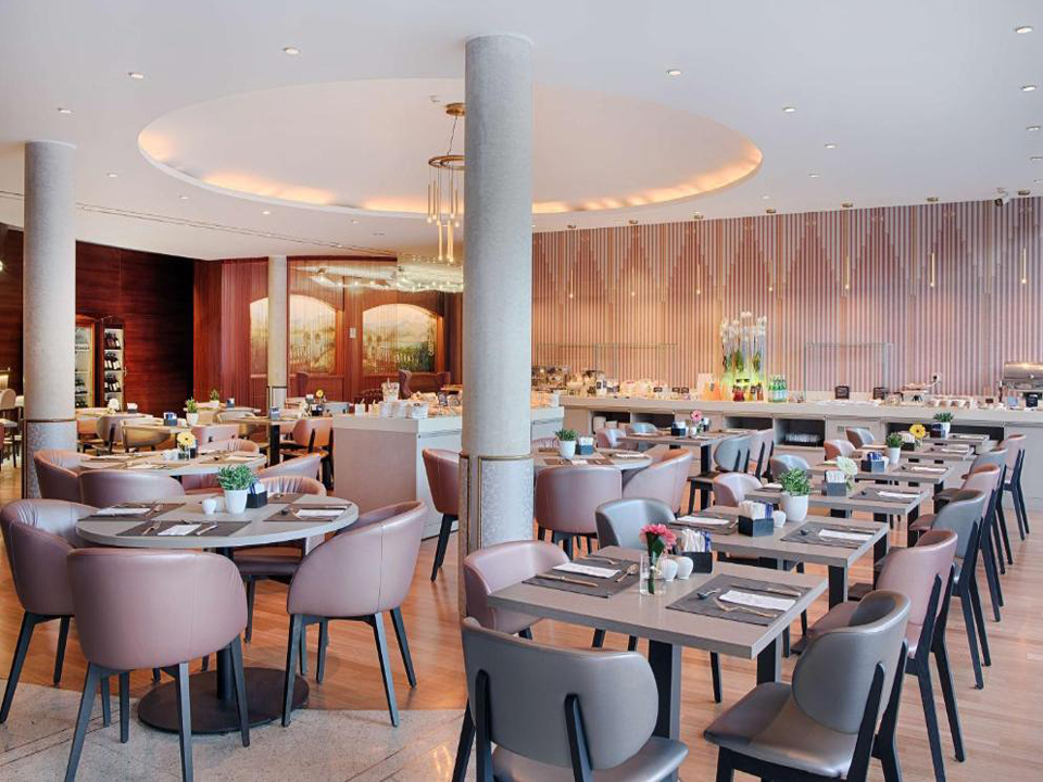 L'hotel dispone di un sofisticato ristorante, "I due Laghi", location elegante e moderna dove gustare un buon calice di vino locale e assaporare specialità lombarde, offrendo agli ospiti un bellissimo panorama da ammirare dalle suggestive finestre a tutta altezza. Durante i mesi estivi è possibile pranzare all'aperto in un ambiente tranquillo e rilassato.