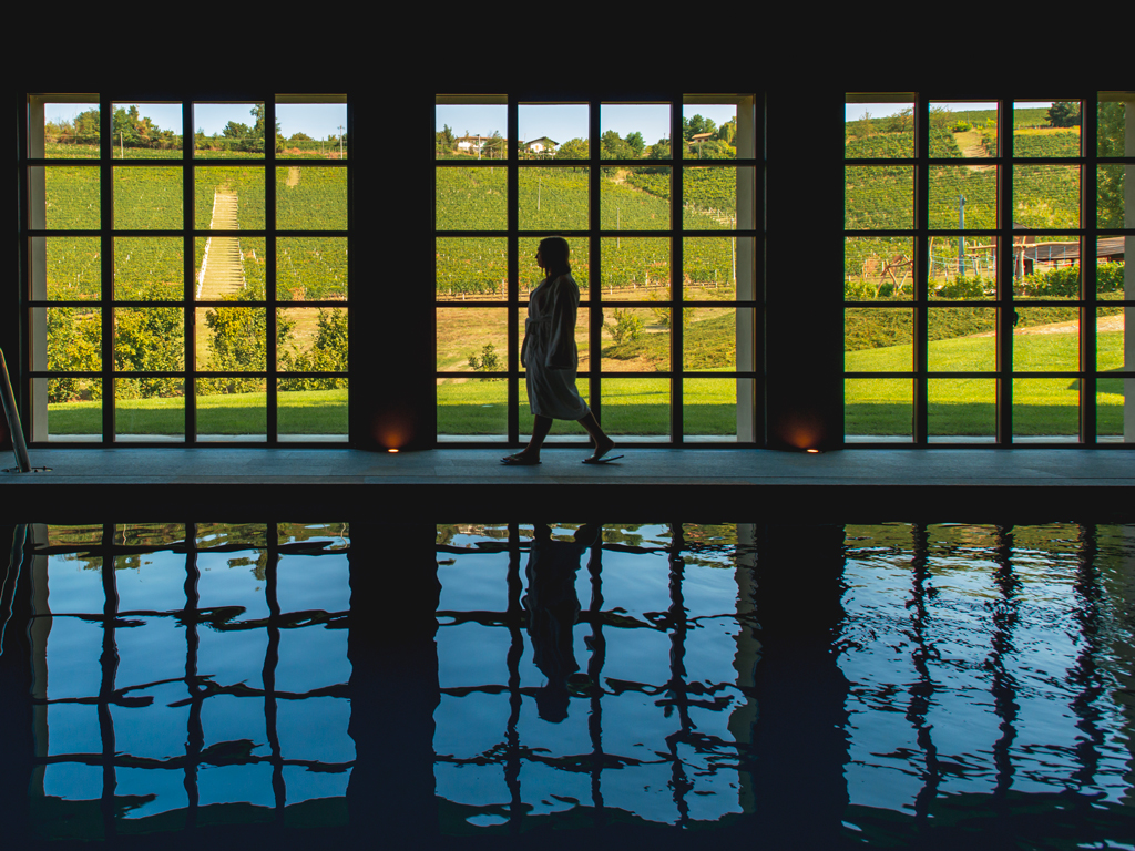 La struttura ricettiva include un Centro Benessere ricavato dall'antica cantina con sauna finlandese, bagno di vapore, vasca idromassaggio, frigidarium, doccia emozionale con aroma e cromoterapia, piscina interna con vetrate panoramiche, area relax, una piscina esterna (stagionale), un campo Executive Pitch & Putt (stagionale), terrazze con magnifica vista sui vigneti.